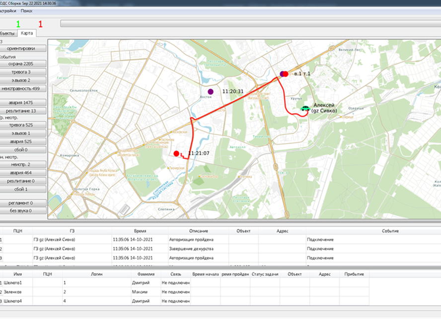 АРМ ОДС-01 загружает при старте собственную СУБД и осуществляет постоянную синхронизацию состояний объектов: «Э.Вызов», «Тревога», «Охрана», «Неисправность», «Рез.питание», «Авария», либо других состояний, с данными состояниями ПЦН СПИ «АСОС Алеся» и ПЦН строронних производителей.